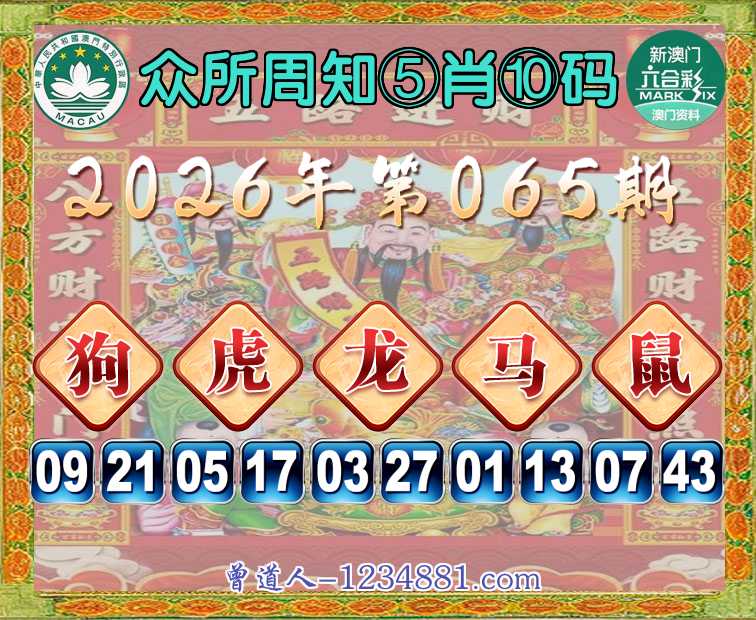 065期: 众所周知 🧤⑤肖⑩码🧤【狗虎龙马鼠】开:虎05准